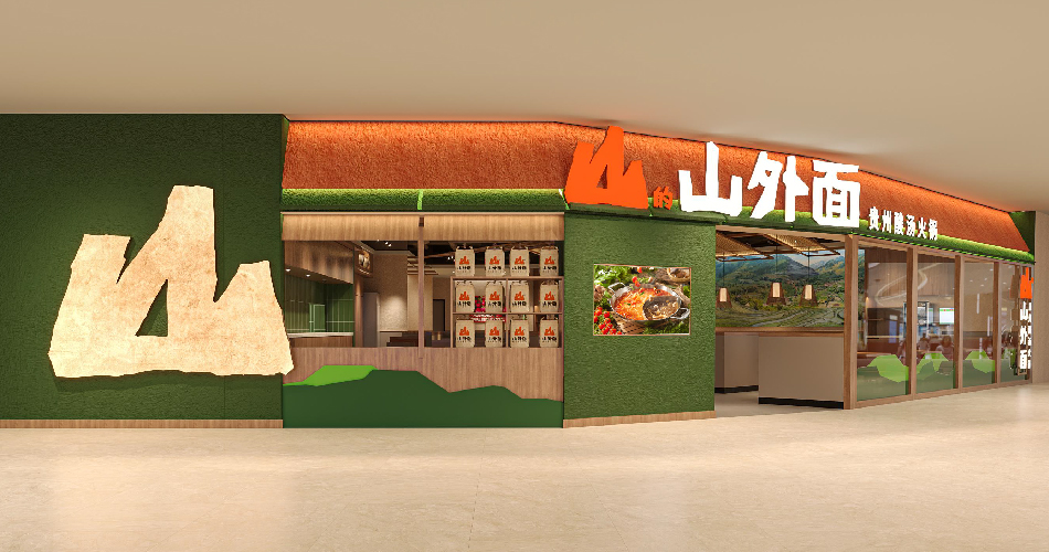 山的山外面是九毛九旗下又一火鍋品牌,主打來自貴州山里的好酸湯。來自大山里,走到山外面。以“山里來的酸”作為品牌標(biāo)語,表達(dá)樸實真誠的品牌理念。將山里的好酸湯好食材,質(zhì)樸真誠的人文屬性,帶到山外面。